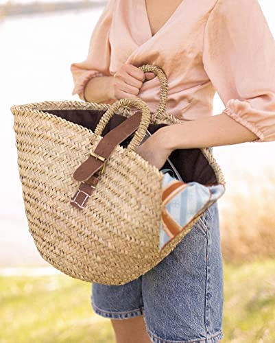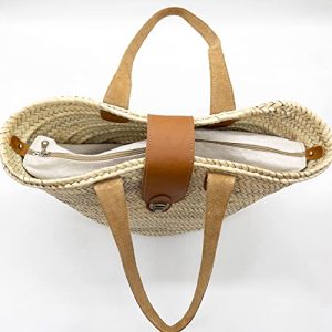 french market basket bag, which can be filled with all your everyday essentials. The zip closer and strong linen material stitched into the rim creates security, keeping your belongings safe and adding those stylish finishing touches. A major point of difference to other straw basket bags on the market. Perfect for a long weekend break in Summer 2022. Take this stylish accessory with you on your travels, effortlessly matching multiple outfits. A beautiful classic Tote handcrafted with natural fibers and Genuine leather. Perfect for the Farmers Market, running errands, the beach, or a picnic. the bag is light and able to hold everything. This beautiful women’s basket bag adds a bit of boho-chic to your wardrobe too. french basket entirely handcrafted in our workshops. All the products of our brand BohemianStyle are designed directly in our workshops. We can guarantee you the best quality, and the best price on the market since we are the main actors of each step of our manufacturing. As a committed company, we pay special attention to the respect of the environment and work daily in this direction. Additional Features: This straw basket is a great beach or picnic basket and will also make a great storage basket at home. Each model is handmade and therefore unique. Details: The chelsea basket is a classic basket entirely woven by hand, made from palm leaves harvested at the local Doum factory. A beautifully crafted basket designed to accompany you everywhere. Package Includes: The product with a little gift for you and guides care for the french basket.