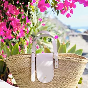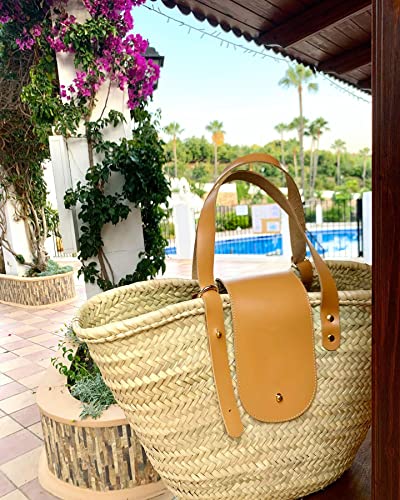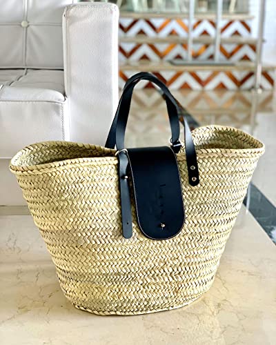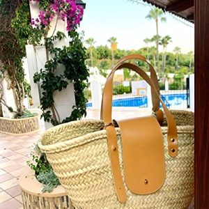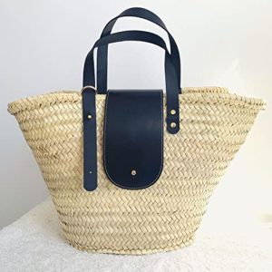 Introducing our luxury leather flap french basket bag with palm leaf body, zinc alloy hardware, and high-quality adjustable leather handles and flap closure. which can be filled with all your everyday essentials. A major point of difference to other straw basket bags on the market. Perfect for a long weekend break in Summer 2022. Take this stylish accessory with you on your travels, effortlessly matching multiple outfits. A beautiful classic Tote handcrafted with natural fibers and Genuine leather. The handles are super handy Perfect for the Farmers Market, running errands, the beach, or a picnic. the bag is light and able to hold everything. This beautiful women’s basket bag adds a bit of boho-chic to your wardrobe too. french basket is entirely handcrafted in our workshops. All the products of our brand BohemianStyle are designed directly in our workshops. We can guarantee you the best quality, and the best price on the market since we are the main actors of each step of our manufacturing. As a committed company, we pay special attention to respecting the environment and work daily in this direction. Additional Features: This straw basket is a great beach or picnic basket and will also make a great storage basket at home. Each model is handmade and therefore unique. Details: The Chelsea basket with its double leather handles is a classic basket entirely woven by hand, made from palm leaves harvested at the local Doum factory. A beautifully crafted basket designed to accompany you everywhere. Package Includes: The product with a little gift for you and guides care for the french market basket.