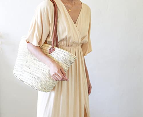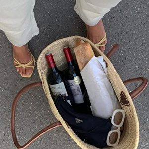 French creation basket in 100% natural palm leaves. Long leather handles for carrying on the shoulder or for carrying the hand. easy to wear over the shoulder, The handles are super handy Perfect for the Farmers Market, running errands, the beach, or a picnic. the bag is heavy and able to hold everything. french basket entirely handcrafted in our workshops. All the products of our brand BohemianStyle are designed directly in our workshops. We can guarantee you the best quality, and the best price on the market since we are the main actors of each step of our manufacturing. As a committed company, we pay special attention to the respect of the environment and work daily in this direction. Additional Features: This straw basket is a great beach or picnic basket and will also make a great storage basket at home. Each model is handmade and therefore unique. Details: the Istanbul basket with its double leather handles is a classic basket entirely woven by hand, made from palm leaves harvested at the local Doum factory. A beautifully crafted basket designed to accompany you everywhere. Package Includes: The product with a little gift for you and guides care for the french basket.