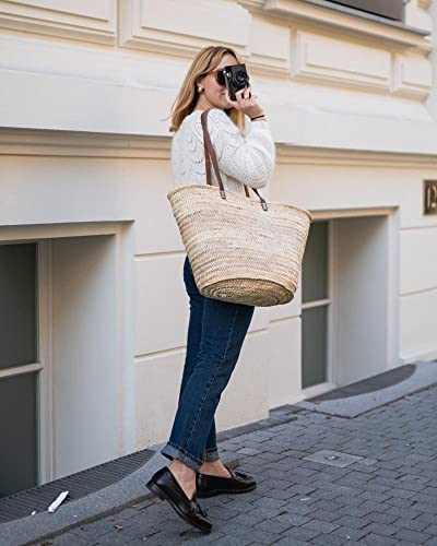 French creation basket in 100% natural palm leaves. Long leather handles for carrying on the shoulder or for carrying the hand. easy to wear over the shoulder, The handles are super handy Perfect for the Farmers Market, running errands, the beach, or a picnic. the bag is light and able to hold everything. french basket entirely handcrafted in our workshops. All the products of our brand BohemianStyle are designed directly in our workshops. We can guarantee you the best quality, and the best price on the market since we are the main actors of each step of our manufacturing. As a committed company, we pay special attention to the respect of the environment and work daily in this direction. Additional Features: This straw basket is a great beach bag or picnic basket and will also make a great storage basket at home. Each model is handmade and therefore unique. Details: the Istanbul basket with its double leather handles is a classic basket entirely woven by hand, made from palm leaves harvested at the local Doum factory. A beautifully crafted basket designed to accompany you everywhere. Package Includes: The product with a little gift for you and guides care for the french basket.