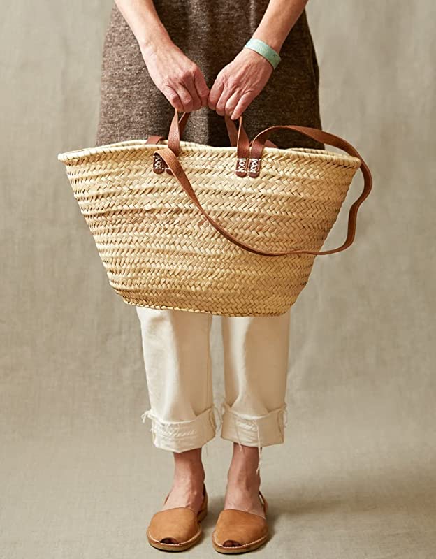 Sturdy and stylish, this shoulder straw bag was built to last. Even after a quick look at the elegant woven pattern and high-quality stitching, it’s easy to see why the Ibiza straw Basket is one of our bestsellers. French creation basket in 100% natural palm leaves. Large flat leather handles for carrying on the shoulder and small leather handles for carrying the hand. easy to wear over the shoulder, The short and long handles are super handy Perfect for the Farmers Market, running errands, the beach or a picnic. the bag is light and able to hold everything. french market basket entirely handcrafted in our workshops.