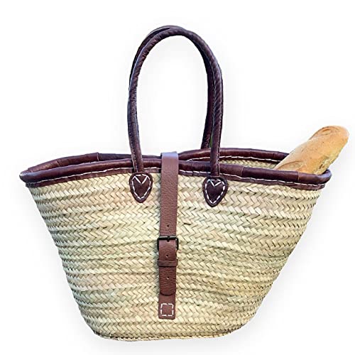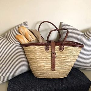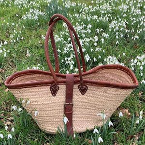 Introducing our luxury leather flap basket bag with palm leaf body, high-quality long leather handles and Belt Type Closure. which can be filled with all your everyday essentials. A major point of difference to other straw basket bags on the market. Perfect for a long weekend break in Summer 2022. Take this stylish accessory with you on your travels, effortlessly matching multiple outfits. A beautiful classic Tote handcrafted with natural fibers and Genuine leather. The handles are super handy Perfect for the Farmers Market, running errands, the beach, or a picnic. the bag is light and able to hold everything. This beautiful women’s basket bag adds a bit of boho-chic to your wardrobe too. french basket is entirely handcrafted in our workshops. Approximate dimensions: Height: 12 inches – 30 cm Min. width: 10 inches – 27 cm Max. width: 20 inches – 50 cm Depth: 5 inches – 13 cm All the products of our brand BohemianStyle are designed directly in our workshops. We can guarantee you the best quality, and the best price on the market since we are the main actors of each step of our manufacturing. As a committed company, we pay special attention to respecting the environment and work daily in this direction. Additional Features: This straw basket is a great beach or picnic basket and will also make a great storage basket at home. Each model is handmade and therefore unique. Details: The Chelsea basket with its double leather handles is a classic basket entirely woven by hand, made from palm leaves harvested at the local Doum factory. A beautifully crafted basket designed to accompany you everywhere. Package Includes: The product with a little gift for you and guides care for the french basket.