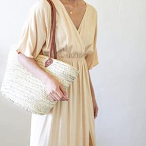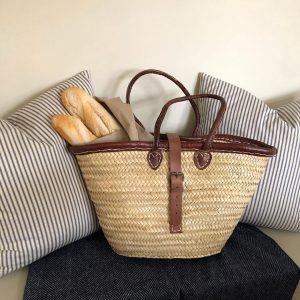 FRENCH MARKET BASKET straw bag with leather handles beach bag