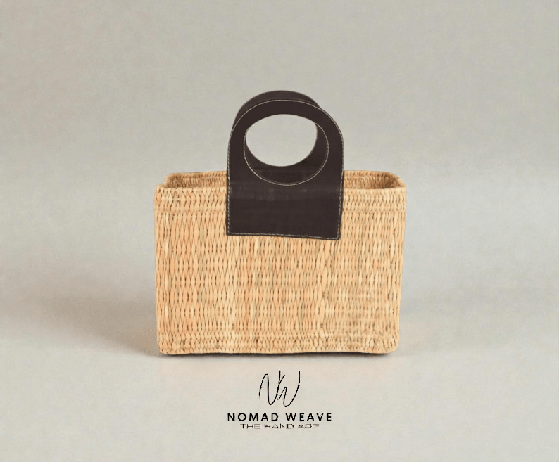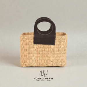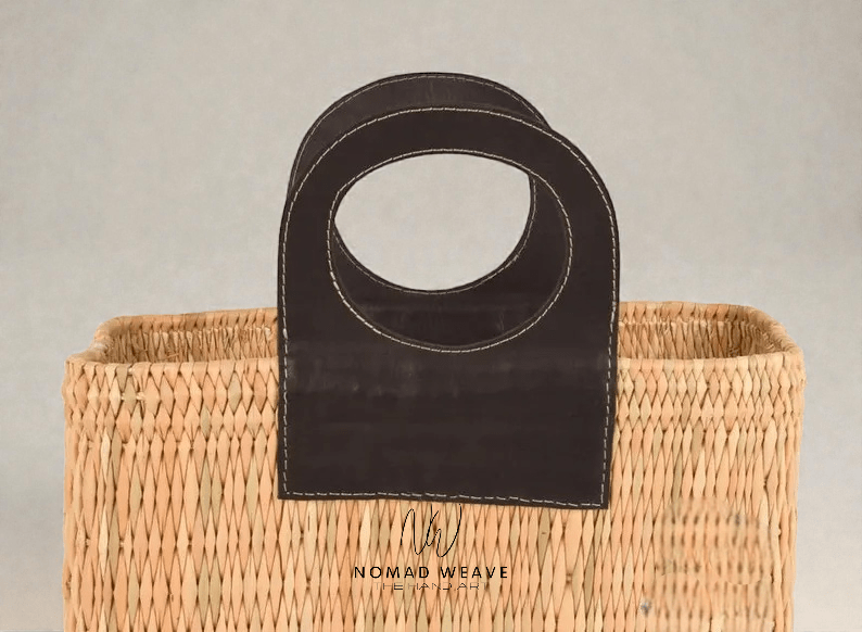 This Moroccan basket is entirely handwoven from natural palm leaves and finished with a wide, minimalist leather handle known as the “Zero handle” design. Its clean lines and timeless aesthetic make it both a functional storage piece and a refined decorative accent, perfectly suited for modern, bohemian, or Mediterranean interiors.